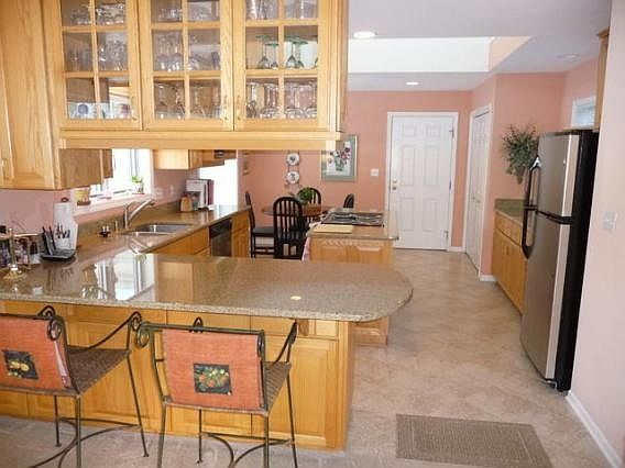 Side by side end unit lake condo with boat slip in a unique 10 acre park like setting in an 18 unit complex. Updated granite counters and porcelain tile floors in kitchen and 3 baths. Newer carpeting. Master bedroom has lofted ceiling. 3rd bedroom with pocket doors to living room on main level currently used as TV room. Open floor plan. Spacious kitchen with many cabinets. Large deck for entertaining. Short walk to lake. Crawlspace only and no lake view from condo. Square footage & year built per public record. Pets: one dog or 2 cats (no guard dogs). Home warranty offered by seller.
