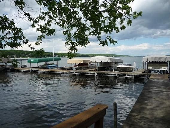 Like living in a resort, this Pewaukee Lake condo comes with boat slip. Kitchen has engineered HWF and oak cabinets, tile floors in some baths, gas FP in LR, many closets, lofted ceiling in 2nd floor MBR, 2 decks & large common area with gazebo & screened lake shelter. Short walk to lake or golf course. No lake view. Golf course is nearby. Garage is 2 wide by 2 deep for total of 4. Main floor bedroom used as den. 3 full baths. A buyer may wish to make some updates. Pets: 1 dog or 2 cats or 1 dog and 1 cat (no guard dogs). New roof shingles in Nov. 2010. Square foot & year built are per www.assessordata.org