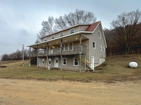 Located in the bluffs of Pepin County, this home on 40 acres provides country living at it's finest. This home has an open concept layout, 4 bedrooms and 2 bathrooms, with main floor laundry. A large deck provides incredible views of the countryside, an unfinished basement, and plenty of room for entertaining family and friends. A 60' X 84' shed/shop with 3 overhead doors, floor drain, and in floor heat is a perfect place for storing equipment, or working on semis or farm equipment. Acreage consists of 16 tillable acres, with the rest being a South facing bluff that provides excellent hunting opportunities. This property is located only 10 minutes from Durand, and 25 minutes from Eau Claire. Additional shed and barn are located on the property and can be used as storage or for animals. This is a great homestead in an ideal location for a family to enjoy country living.