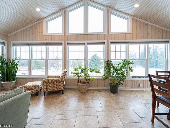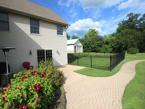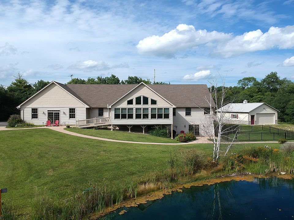 Stunning 4BR/5BA retreat on 5 beautiful acres with mother-in-law suite w/2nd kitchen and bonus 800 sq ft pole barn w/separate driveway. The main level features an open concept living space w/spacious living rm open to gourmet kit w/2 gas stoves, granite & large bfst bar, dining rm, multiple mstr suites, HW, fabulous glassed in sunroom w/pellet stove & amazing views of the ponds & countryside and 3 car attached garage. Enjoy summers fishing in one of the two fish stocked ponds. Lower level features family rm, bed, office/exercise rm & 2nd kitchen w/slider to patio & doggie door to fenced in yard.