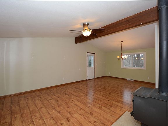 Beautifully Updated 3 Bedroom Ranch on Acre Lot-Open Concept with Vaulted Ceiling, Gorgeous Kitchen with Solid Surface Counters, Wood Floors, Wood Burner, New Windows, New Carpet, Updated Bath w/ Ceramic Tile Walk Out Basement. Metal Roof, Private Wooded Lot. Why Rent When You Can Own?