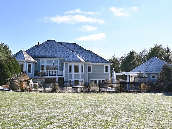 Your search is over! Gorgeous split ranch located on a impressive private 1+ acre lot in Kettle Moraine SD has everything you need to want to stay home! So many special features; sure to be a favorite is the inground salt water pool surrounded by gorgeous flag stone, spa, built in gas grilling station, custom brick pizza oven, and pool house! Inside this open concept ranch you will find soaring ceilings, gorgeous wood work, refinished HWF and many ''extras!'' Master suite w/ tray ceiling, window seat, enormous WIC and luxurious bath with walk in shower. Lower level is perfect for entertaining with granite custom bar, family room, office area, full bath and den w/WIC. Newer mechanicals for peace of mind. FF laundry. Gorgeous! *PLEASE SEE ATTACHED DOCS FOR UPDATES & SPECIAL FEATURES*