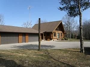 Listing agent: Dan Bierman, Call 920-294-3661 for information. Few log homes are built with massive 16" to 18" solid hemlock logs as this comfortable home. You can see and feel the quality that has gone into this home and the love and care it has gotten. The interior decor is rustic with exposed wood beams, wood trim and wood plank floors.The main level has a living room, eat-in kitchen, guest bedroom, guest bath and master bedroom with half bath. The cathedral ceiling over the living area continues to the loft that overlooks the living room providing a study or additional sleeping area. The full 9'8" high basement has sealed and painted walls and floor making it adaptable for finishing to more living area. There is a covered entry, open deck and covered porch for enjoying the fresh country air.A 4 car garage, with LP gas radiant heating, will easily store your vehicles and recreation equipment. The wooded country lot is attractively landscaped with plantings, paving brick walks and privacy hedge