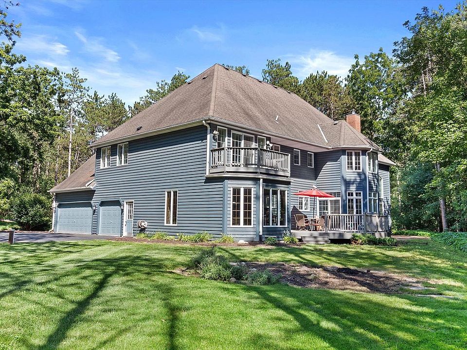 Over an acre of seclusion on this wooded lot with hiking trails to Kettle Morraine await you. This spacious house boasts over 4200 sq ft and will impress with an open floor plan, gorgeous HWFs, floor to ceiling windows in the great room, and custom built-ins. Along with a dining room, spacious eat in kitchen with patio doors leading to the deck, it is perfect for entertaining. Addl bonus room on main with full bath. Upstairs you will find 3 generous sized bedrooms w/ WICs 2 additional baths, and the impressive master wing with tray ceilings, a private balcony, and generous ensuite and WIC. The finished lower level offers 1200 addl sq ft for even more entertaining space with a wet bar, half bath and seperate entrance from the 3 car garage. Close to 1-94, shops and restaurants.