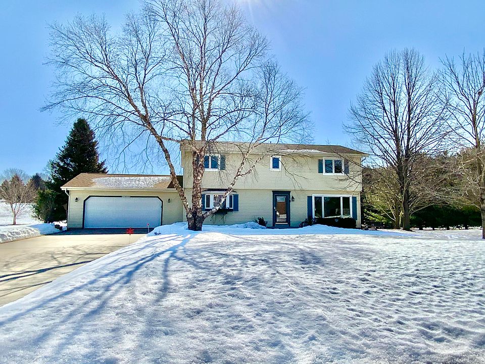 Welcome home to this beautiful colonial in an absolute prime location w/a large 1 acre private lot. Fall in love w/the sun-filled family room w/all new gorgeous ceramic tile flooring & new windows everywhere! Spacious kitchen & dining area w/a patio door out to a large composite deck overlook the beautiful backyard. Large great room & formal dining room offer tons of living/dining space. Property features granite counters, farmhouse sink, new windows, beautifully remodeled master bath, new front door, water softener (2019), & updated full bath upstairs. In the lower level find a rec room plus two additional rooms great for dual offices or guest rooms & a beautiful full bath. New roof to be installed (paid by seller) in spring by Williams Roofing Co - contract signed in fall.