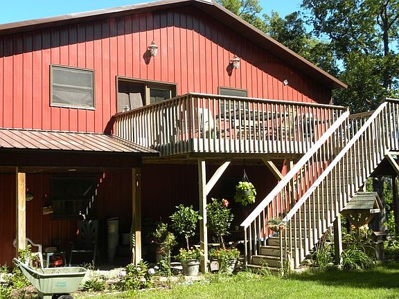 UNIQUE HOME SET AMONG PRIZE HUNTING LAND! FRONT OF HOME IS 2 STORY 6 CAR GARAGE WITH TWO 14FT OVERHEAD DOORS & HEATED FLOORS, WALK INTO LOWER LEVEL REC RM W/INDUSTRIAL KITCHEN, 2 BDRMS, LAUNDRY& FULL BATH. UPSTAIRS IS OPEN CONCEPT KITCHEN/LIVING RM WITH ISLAND, MASTER BDRM, PANTRY & 2ND LAUNDRY. DECK OFF KITCHEN HAS FABULOUS VIEWS OF WOODS & IS PRIVATE. MUST SEE TO BELIEVE!