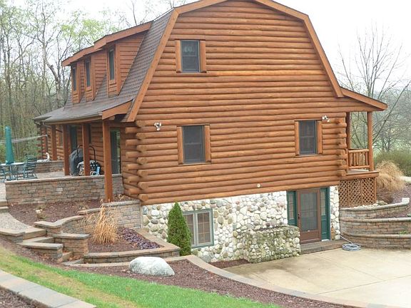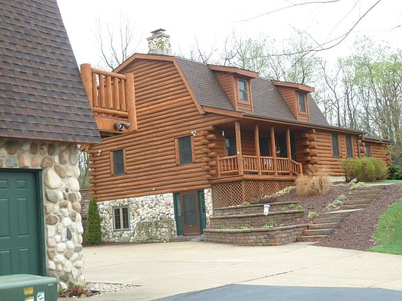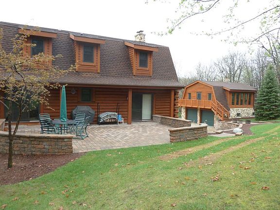 Picturesque 7.9 pristine acres, sweeping views of your park like yard abutting Mukwonago Park. Log home offers entertaining in style with grand custom kitchen, red elm flooring. Loft overlooks great room with impressive stone fireplace. Ample 4 bedrooms including 1st Floor Master. Both formal dining room and dinette offer a great flow of space. Garage has 2nd level unfinished; great for future remodeling. Landscaping has newer stone wall patio. New additional tank and fields