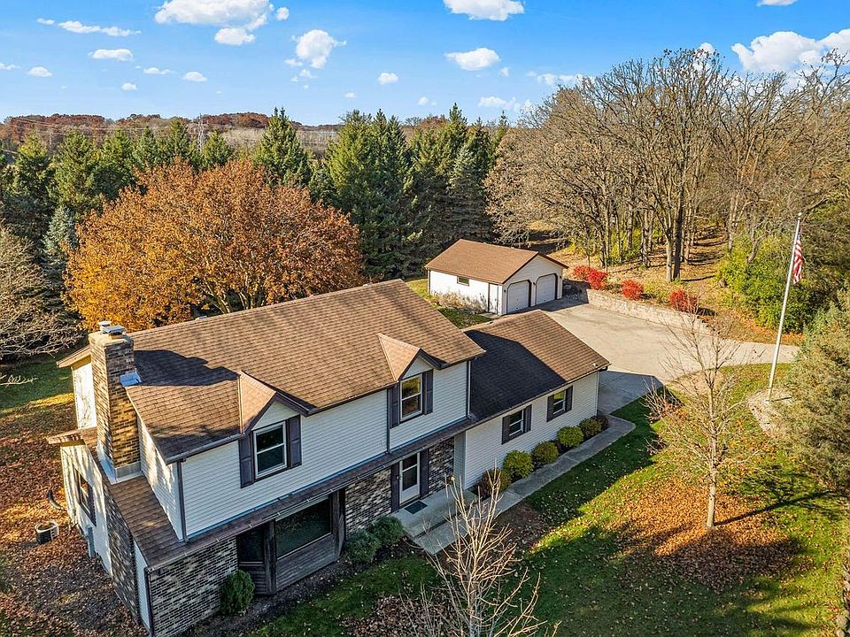 A nature lover's paradise. Enjoy the up North feeling while maintaining convenient access to the best schools and shopping. Over 4 acres showcase picturesque autumn colors as you hike the walking paths through the wooded land. This custom-built home is adorned with amenities inside and out, from the multiple fireplaces indoors to the private balcony and spacious deck overlooking the property. Updated appliances and fixtures meet wooded features to create warm modernity. With six panel doors and 2x6 construction, this house is sturdy and withstanding. Bordered on over 1000 acres of Waukesha Land Conservancy and the Kettle Moraine State Forest, savor solace in the great outdoors while cherishing comfort in the home year-round.