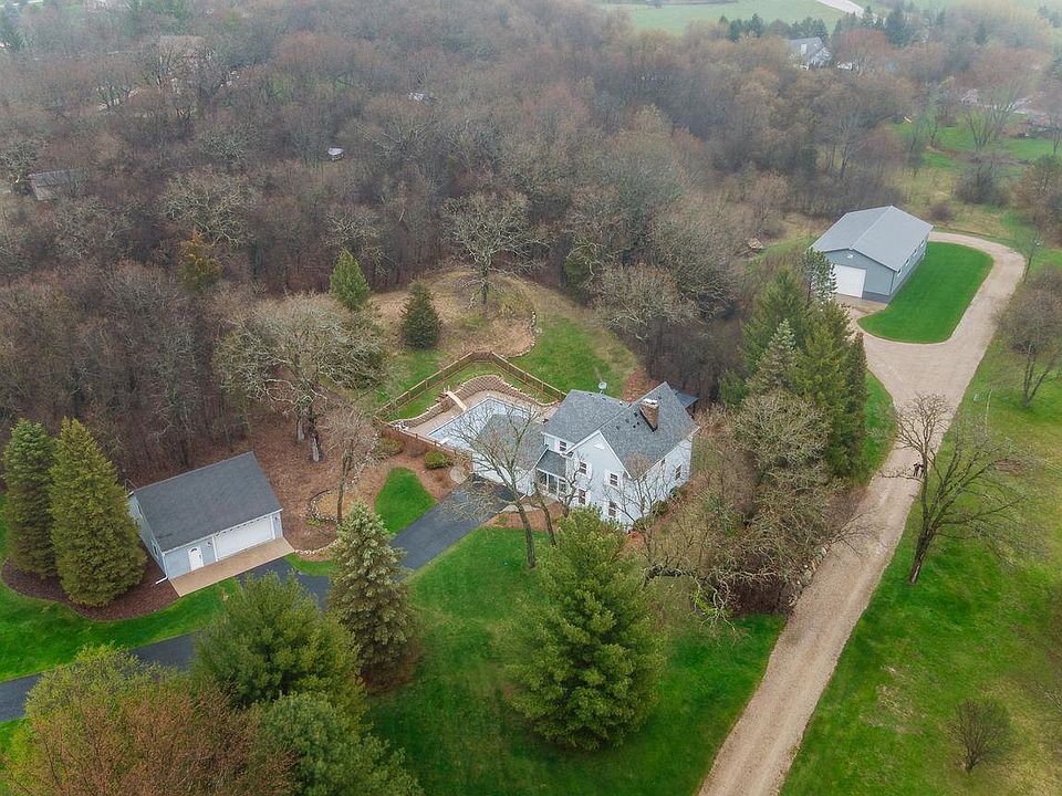 This spectacular country estate offers a well appointed, comfortable home along with the outbuildings and space you need for hobbies, equipment and the outdoor lifestyle you enjoy! Designed with the outdoor enthusiast in mind, you'll find outbuildings that were carefully planned to accommodate your motorcycles, cars, motor homes, boats, jet skis and horse trailers. Surrounded in wooded privacy, the home is turn-key ready for entertaining poolside, or enjoying the serenity of nature in your own private sanctuary. Located just blocks from the Kettle Moraine State Forest, many Golf Courses, biking paths and lakes, you are still only minutes to shopping, theaters and restaurants. This fine home combines the best of Country Living and City Convenience. 7 miles to I-94 and 10 miles to I-43.