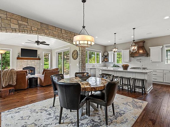 Exquisite 2019 Parade of Homes model showcasing luxury and comfort at every turn. The main-floor primary suite offers a spa-inspired retreat, while the open-concept design highlights a gourmet kitchen with Wolf, Sub-Zero & Cove appliances, double ovens, and beverage coolers. Enjoy both a cozy gas fireplace in the great room and a wood-burning fireplace in the sunroom. The lower level features home theater potential with access from the heated 4-car garage. Outdoors, a spacious patio with gas firepit is framed by professional landscaping. High-end finishes, Sonos sound system, and walking distance to scenic trails. Easy access to Hwy 18, I-94 & downtown Delafield. Featured as the Ronald McDonald Christmas Fantasy House. UHP Warranty included.