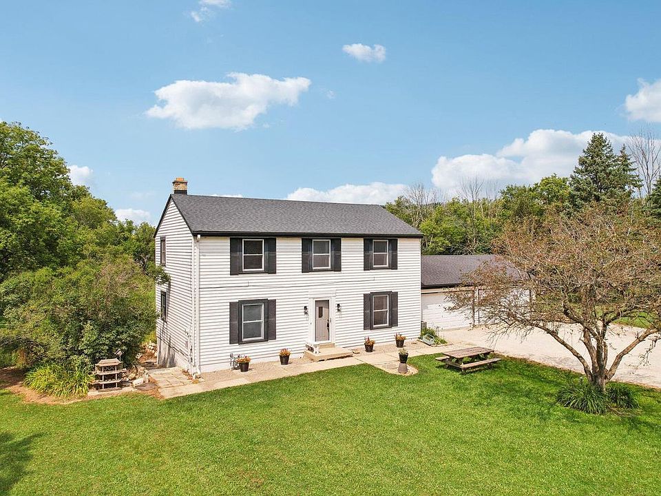 Endless possibilities for this Stone Bank estate setting in the Arrowhead school district. Spacious floor plan includes main level kitchen with panty and dinette. Patio doors to huge screen porch overlooking expansive yard. Main level DR, LR, half bath and office/den. Upper level includes Four bedrooms with HWFs and full bath. Lower level walkout lower with large rec room with NFP and patio doors out. Third toliet and plumbing for sink is ready for another bath. Bring your collector car, hobbies or horse to the 4 car attached garage and 22' x 29' outbuilding. Many functional updates include roof, gutters, furnace, septic, Electric, and water heater. No private deed restrictions. Zoning on file.