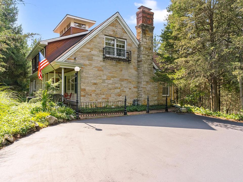 Cozy custom build home nestled atop a hill on 3.5 acres of wooded privacy! Lovingly maintained and updated by the current original owners. Updated kitchen with solid wood birds eye maple cabinets, granite countertops, maple flooring and Wolf stainless steel range! The kitchen opens to a beautiful family room- the perfect place to stay cozy by the fire during winter and admire the stunning fireplace with stone from floor to ceiling! The front living room also offers an additional fireplace with red granite cobblestone pavers. Wooded lot provides plenty of privacy and you will find a spacious unfinished 40x40 concrete block steel truss structure is a great hobby building with many possibilities!