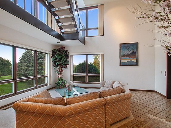 From every angle you will find this Tuscan style home fascinating. Amenities include an open floor plan, fireplace, elevator, finished walk out basement, walk in cooler, 3 story tower with excellent lake views. Located on 15.85 acres with a pond. Grounds used to be a private golf course, zoned for horses. Two new furnaces installed March 2019. Only minutes from Lake Geneva.