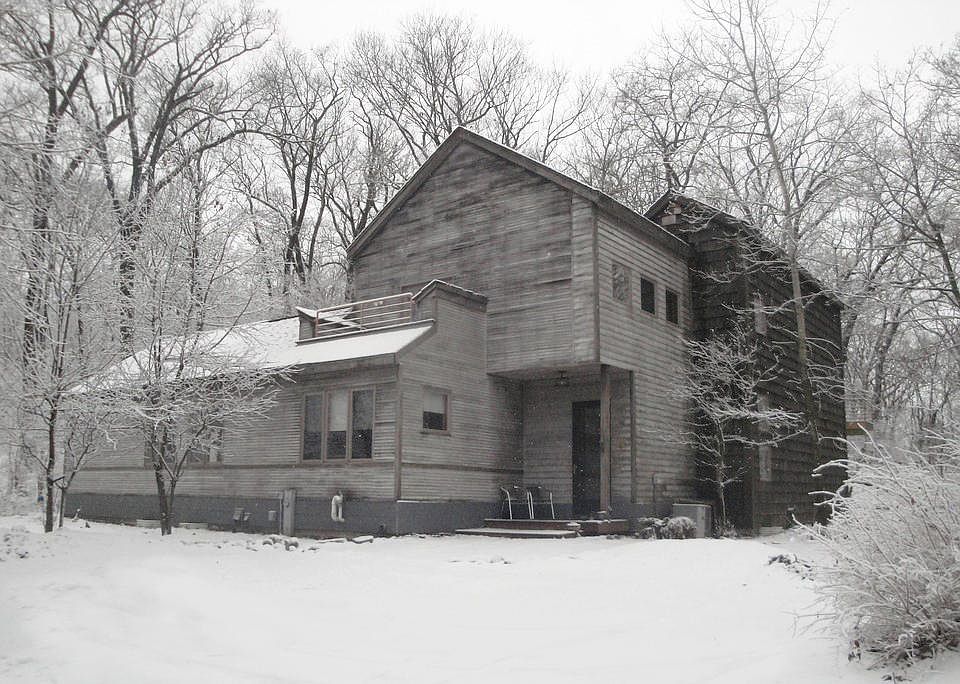 4 bedroom, 3 bath Contemporary on 3.8 acre wooded lot. 3-Story central atrium with 23 foot skylight, open stairway. Kitchen with maple cabinets, stainless steel. Hardwood floors throughout. Master Bedroom with volume ceiling, balcony, bath. Second bedroom with volume ceiling and terrace. The guest/mother-in-law suite has a separate entrance with a bedroom, bath, great room, kitchenette, patio doors. Forest views from every window. Home Warranty.