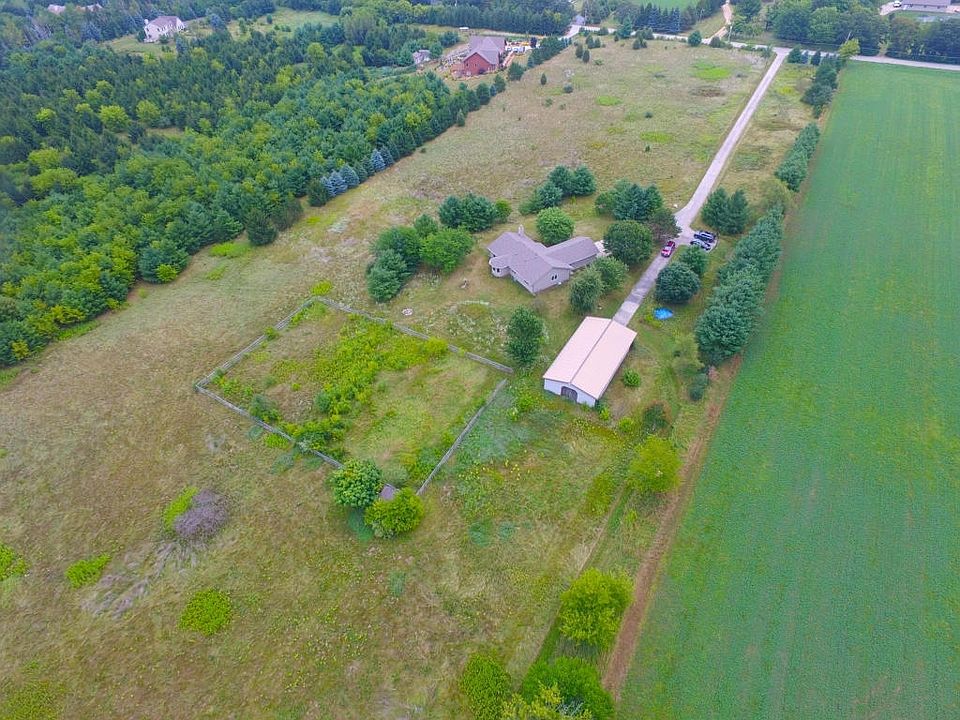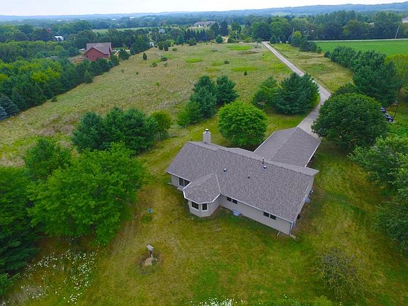 Rare opportunity, 10+ acres of private setting, fenced pastures & phenominal views & abuts Ice Age horse/walking trails. Attention horse lovers or outdoor enthusiasts, the home includes a 60 by 30 Morton pole building with electric & water, concrete/gravel floors, PREPPED FOR HORSE LOVERS OR HOBBIEST! 1990 built home has 3 bedrooms, 2 baths, living/dining room combo with a natural fireplace & vaulted ceilings. Roof 4 years old and A/C & furnace is 1 year old.