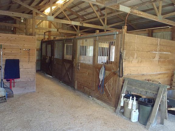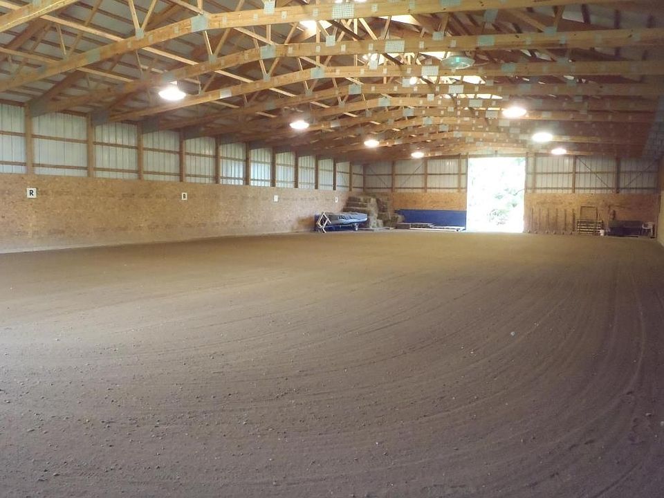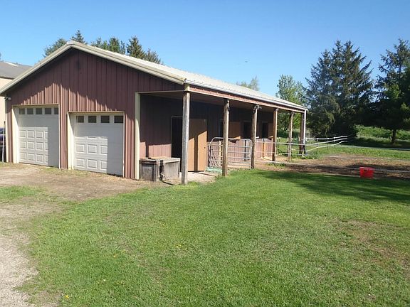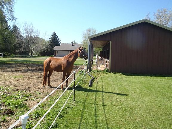 3 bedroom 2 bath home & equestrian facility on 5.5 acres near Kettle Moraine trails.Well lit 60x120 Morton riding arena. Horse barn features 3 finished, matted stalls with space for tack room, hay & loft storage. Electric tape fenced pasture. Updates include freshly painted exterior, newer windows, carpet in 1st floor bedrooms & tile in bath's. Spacious eat-in kitchen, family room with pasture & pool views. Franklin wood burning stove. Above ground pool & finished lower level
