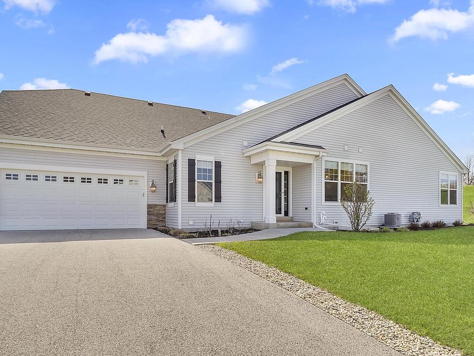 Gently lived in two bedroom ranch condo in Oconomowoc's Bay Pointe! The spacious kitchen features granite counters, maple cabinets w/custom roll out pantry shelving, and upgraded appliances! The dining area is great for gathering w/room for a large table! Open concept great room offers engineered HWFs, a gas fireplace, and leads to the beautiful sunroom w/door to a private covered porch! The comfortable primary suite easily accommodates a king bed, offers a large WIC, a second door to the covered porch, and a private bath w/walk-in shower! Bedroom two is ample in size, and bathroom two features a $16k luxury Kohler walk-in tub! Unfinished LL w/egress is great for storage, and is plumbed for a third bath! Main floor laundry & 2 car garage! Low Town taxes & location can't be beat! Must see!