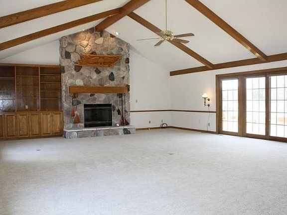 Home on Upper Oconomowoc Lake offers 230 feet frontage. Living room with skylights and fireplace is open to formal dining room. Gourmet kitchen with dinette has professional appliances. Huge great room with cathedral ceiling, fireplace and patio door to deck. First floor master suite with fireplace. Level lot for easy stroll to the lake and pier. Home has 35 KW back-up generator, circular drive, sprinkling system. Move-in ready lake living at its best!