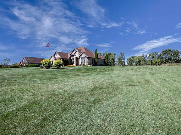 Enjoy beautiful sunrises and sunsets in this sprawling ranch in famed Equestrian Park. Tree lined roads and driveway brings you into the 6.16 acre parcel. Home has stunning beamed cathedrals in large great room w/floor to ceiling stone fireplace, many windows to view the plentiful wildlife. Large covered screen porch for enjoying the peacefulness. Hardwood floors, wet bar, and easy flowing floor plan. Kitchen w/granite tops and snack bar. Formal dining room, office, and grand foyer. Primary bedroom with gas fireplace, walk in closets, primary bath w/large jetted tub, tile walk in shower and dual vanities. 1st floor laundry with lockers. Basement access from attached garage. Newly built additional detached 3 stall garage w/finished 15x39 bonus room above.
