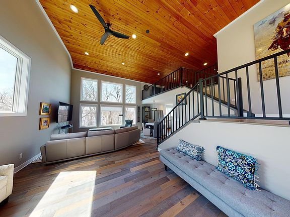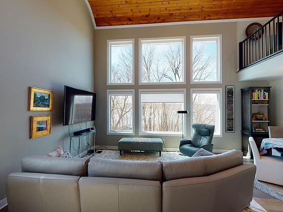 You'll enjoy the Beautiful Bay, Mississippi & Bluff Views when you walk into this completely renovated Church. The 2 Story ceiling heights and windows have been placed for privacy, natural daylight & magnificent views. Beautiful Kitchen w/stainless appliances, large center aisle, & sold surface countertops. Nice open floor plan. Main floor laundry. You'll love the 4 Season room with floor to ceiling windows facing the bay. Lots of cabinetry & storage here. 1 MF Bedroom with owners bath & walk in closet, 2nd floor family room with original church ceiling, 2nd sleeping area & 3/4 Bath. Full basement has another family room, game or dining area & another sleeping room. Basement walks out to side stairway with access to the back of the home. This home is set up perfectly for vacation rental, your vacation get away or your full time home. Room to add patio & bon fire area to the North side of the home. Enjoy Eagles, Pelicans, & more - all that the Mississippi River Valley offers.