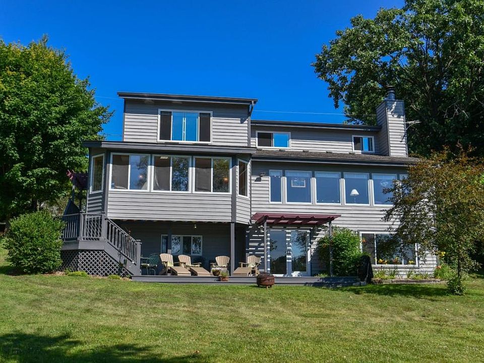 Enjoy a sunrise breakfast on the lakeside porch. The undisturbed conservancy is in view from this sparkling Hunters Lake 3 level home. Important quality is obvious in maple, marble and tile flooring, custom cabinetry/shelving, hard surface countertops, and lighting to enhance the smart floor plan. Large play area on the way to the lake with beach and shore station in view. Hunters Lake is a clear, deep, spring fed lake with pan fish, bass and northern pike population. Enjoy water skiing, jet skiing, swimming and wake boarding from 11-6. 'No wake' enthusiasts frequent the calm waters with canoes, kayaks and paddle boards. Lake living year round with all the ease of today's modern home.