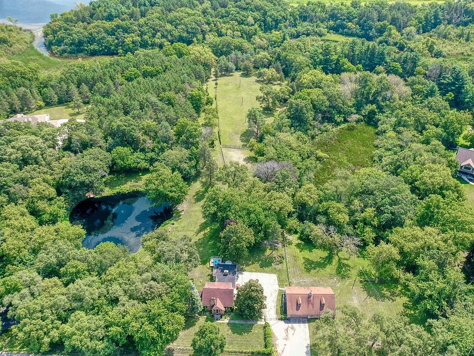 Charming cape cod home and rustic stone barn/garage sits on 7 acres of picturesque, rolling, lush green pastures dotted with towering trees along with a sparkling pond and Scuppernong Creek frontage leading to Dutchman Lake! The barn has 4 box stalls and an outside staircase that leads to a large room above, currently storage. The home features hardwood floors, slate look tile, & cozy GFP with brick surround. The kitchen is open the family room and has a vintage faux tin ceiling, pantry cabinet with pull out shelves, and rustic metal backsplash. The inviting library has a bookcase wall and sliding glass door that leads to the deck overlooking the pond. The upper level has 2 spacious bedrooms and the main bath. Close to schools and downtown Dousman!