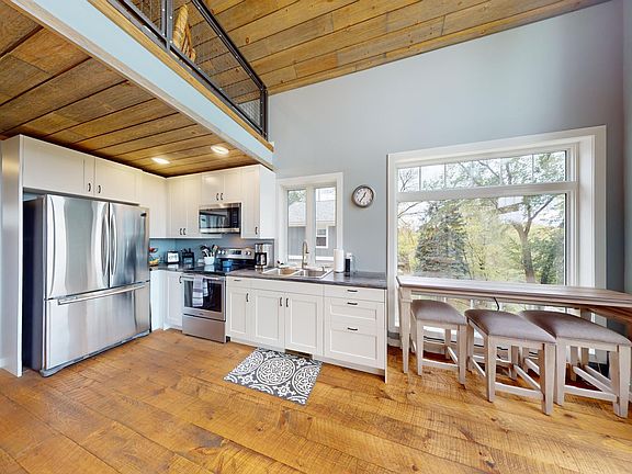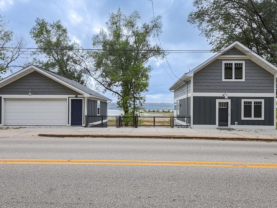 Situated with breathtaking views & gorgeous sunsets over Lake Pepin, this property offers a serene and picturesque setting. New Construction in 2018 with attention to detail inside & out. This home has 2 bedrooms & 2 baths, with a spacious 2nd-floor loft that serves multiple purposes, including extra sleeping areas. Vaulted ceilings with recessed lights, a wall of windows to showcase the views, solid wood plank flooring throughout the three levels, custom iron railings, shiplap ceilings, & sliding doors that contribute to the charm & character of the home. Main floor full bath offers granite top & tile floors, LL half bath has laundry. The family room features a wet bar & beverage refrigerator, perfect for entertaining. Additionally, there's an adjoining patio & firepit area for outdoor gatherings. Spacious 2 Car Detached garage. Maintenance free siding. Located just 2 blocks from the park & downtown businesses. Enjoy this fabulous property year round or as a weekend escape!