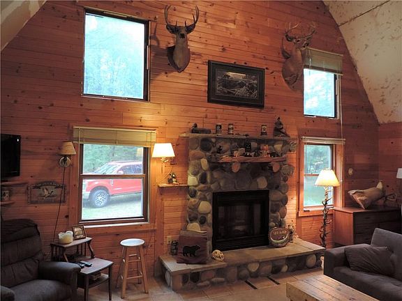 Here is your chance to set up you new recreation base camp. 40 heavily wooded acres with a rustic cabin and a newer 24'x32' toy storage garage. This property has a drilled well and a conventional septic. The property does adjoin 120 acres of DNR land so you have plenty of room for you hunting party. Spring Lake boat landing is only about 2 miles away.