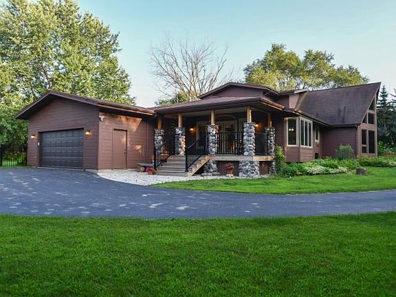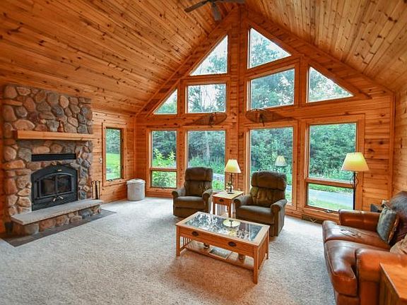 Why go up North when you can have it all here? Nature abounds in this Fabulous 6+ Acre property! Beautifully Done 3 BR 2.5 BA home with 4 Car Garage (2 attached, 2 detached). Enjoy nature from the Huge Deck with Hot tub, or walk the cut in trails and meadows filled with Wildflowers and Wildlife on the secluded property! Large Living room w/ Vaulted Ceilings, Wall of Windows, and Natural Stone Fireplace w/ Blower for heat! Kitchen, Dining Combo w/ Granite Counters, Hardwood Floors, and Center Island. Enjoy morning coffee on the amazing new covered Porch! 2 Nice Sized Bedrooms on Main floor along w/ 1st floor Laundry! Take the Open Staircase up to the Master Suite with 2 Way Gas Fireplace. Large Bedroom with double closets. Master Bath w/ Dual Vanity, Walk-in Glass Shower. Finished Lower!