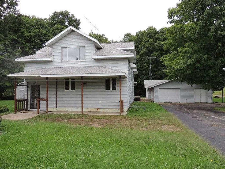 Large rural home situated on 1 acre lot. Very nice sized rooms including on main floor; living room, rec room, dining area, kitchen and 1 bedroom and 1 bath. 2nd floor offer Master bedroom with master bath, 2 other large bedrooms and another full bath. Newer roof and updated vinyl sided on home. 1,572 sq ft garage with garage doors on 3 sides, and heated wood shop, and 16x12 shed for additional. COME SEE!!