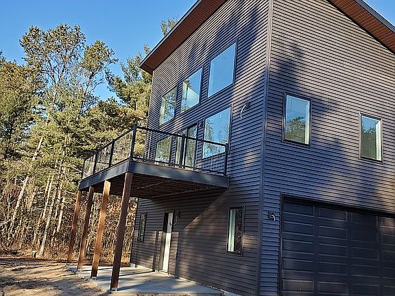 LIFE IS FULL OF SURPRISES. We had planned to retire in this home near our kids and grandkids. As soon as we were done building, they broke the news that they will be moving across the country and we are selling this new construction home 2 Bed / 2 bath. 3.3 acres. 200’ of lake front, on a bluff 15’ above lake level. Sandy beach to enjoy picnics with great views of the lake! Garage could easily be converted to a large rec room and another bedroom easily, if needed. We cleared large portion of the lot to accommodate campers, boats or even building another home or small cabin for rental opportunity. No HOA, difficult to find a lakefront property that is not part of an HOA. We have a dock permit. WRPRCO may not issue a license to the new owner, however rules change every year!! Bedroom – 12’ x 15’. Vaulted ceiling with large windows overlooking the lake. Vinyl Plank flooring and barn door leading to the HUGE master closet give this modern house a touch of rustic too. A full-length mirror in the master closet and a large main floor laundry in between the closet and bathroom with additional area for storage, etc. Main floor bath features a double sink, and a stainless steel 8 jet shower panel in the walk-in shower. Kitchen utilizes premium custom-made cabinets that includes heavy duty drawers on each of the bottom cabinets. The farm sink and blue island cabinet gives a little accent to the rest of the white cabinets and light granite counter tops. The built-in oven and microwave are at the perfect height. The stove top is located on the island that easily seats 3. There is also a built-in spice rack in the island. Under counter. We also had outlets installed above the cabinets for decorations for any season. The lower level features a 2nd bedroom and full bath/tub. The bedroom is 9’ x 11’ with a large closet. The utility/storage room off the garage is heated and is 8’ x 19’. Additional storage under the stairs. The entrance includes a large closet/storage area. There is a place for a bench to hang more coats and for shoe storage.