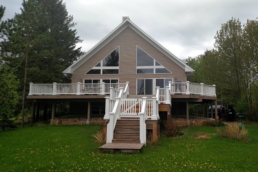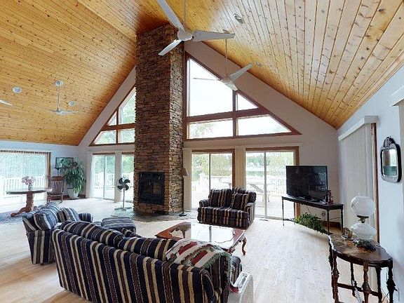 There is plenty of room for everyone in this open-concept 4+ bedroom, 3 bath home with beautiful frontage on Lake Louise! Enjoy panoramic views of the water from the deck or cozy up by the fireplace in the huge living room. The lower level provides extra room to entertain, and there's also a boat dock, 3-car detached garage and shed for storage of all your toys!