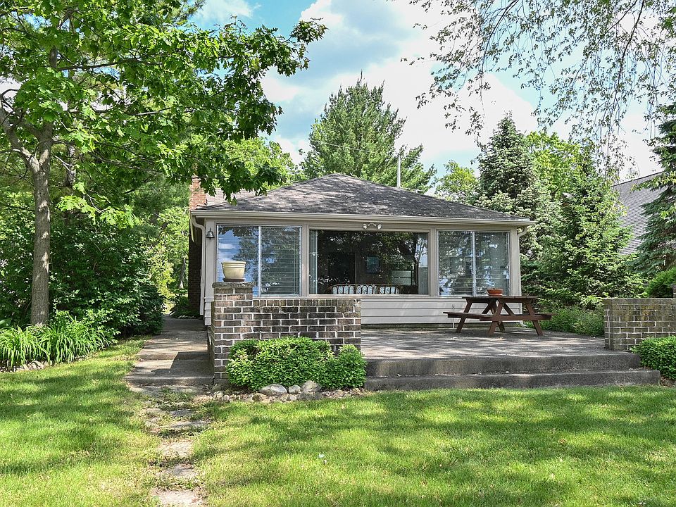 2 Bedroom Cottage with beautiful view of School Section Lake. Approx. 60 feet of frontage. Large family room with windows on 3 sides with great views. Concrete patio. Brick fire pit. Knotty pine living room with natural fireplace. Storage shed at lake. All furniture is included in sale. School Section Lake is approx. 122 acre lake, allows motor boats. Pier included.