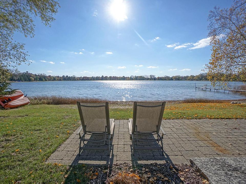 Exceptional home and setting on a large 2.7+ acre lot with 66 ft. of beautiful frontage on Pretty Lake! Enjoy remarkable lake views and sandy swim frontage on this 65 acre spring fed recreational lake. Spacious raised ranch home features large living room on main level. Kitchen has new countertops and backsplash. SS appliances included. Main floor master suite. Updated main bath offers new quartz dual sink vanity. Finished walkout lower level has full size windows and includes 2 BR's, dining room, full bath, and family room with natural fireplace. Large finished rec room on opposite side of lower level. Relax on the side deck or lakeside patio. Detached garage. Property includes a huge wooded bonus lot across the street providing privacy, and additional parking and storage options!