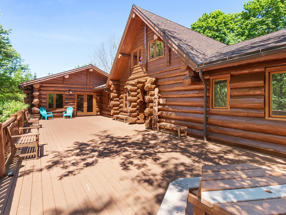 One-of-a-kind secluded full log home on nearly 8 acres! Gorgeous imported logs from British Columbia, care and attention to detail are evident in this 4000 sq ft custom built home. Features include massive stone fireplace & cathedral ceilings in great room, granite counters in kitchen, main floor master & laundry, & heated 2 car garage. Bedrooms & full bath in walkout lower level set up for entertaining. Plenty of room outdoors on the massive wrap-around porch, beautiful grounds, and 60 x 30 heated pole shed. This wooded oasis only few miles to downtown Lake Geneva. See link for 3D tour.