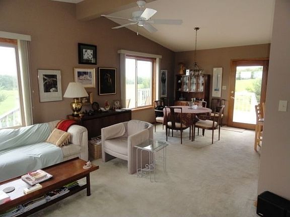 Beautiful rural ranch home on 2 acres. 3 bedrooms, 3 baths. Open concept with large living and dining area. Master suite with walk in closet. Oversized two car garage. Very large wrap around deck and remote control Sun setter Awning. Finished lower level with family room, bedroom, bath and large storage area. 16 foot by 20 foot insulated storage unit or workshop. This is a very nice property in a quiet rural location. Great Price.