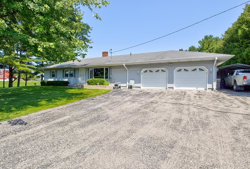 Porterfield, Marinette County, ranch home with four bedrooms 2 baths on 1-acre country setting. Attached 24 x 28 garage with professionally finished floor by Legacy. Detached 32x60 quality constructed garage with steel exterior and concrete floor, with 3 14-foot high doors and gas line to garage. Built in 2018. Meticulously maintained home features hardwood floors, updated flooring, wood-burning fireplace, wood doors, updated kitchen with seated bar. Includes all appliances. Updated bathroom with quality Tundraland shower, double sink. Main floor laundry. Full dry basement with finished rec room, including bar and pool table. Beautifully landscaped. A must see! OWNER HAS OWNED PROPERTY SINCE 2006.