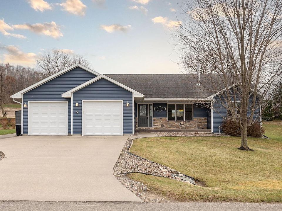 If a new home is on your holiday wish list, this one just might be it! Set on a large yard within a country subdivision on the edge of Mindoro, this home offers an open floor plan with a split bedroom design. An ideal set-up for entertaining, the living space includes vaulted ceilings, a cozy wood stove and a gorgeous kitchen with a center island. The primary bedroom includes a private bathroom and walk-in closet. The lower level is finished with a family room, fourth bedroom and a half bath that could easily be converted to a full. Lots of unfinished space for storage or future expansion. Outside, the covered front porch and back patio (both with stamped concrete!) offer great spaces to unwind. A 2.5-car attached garage plus an additional poured parking slab complete the package.