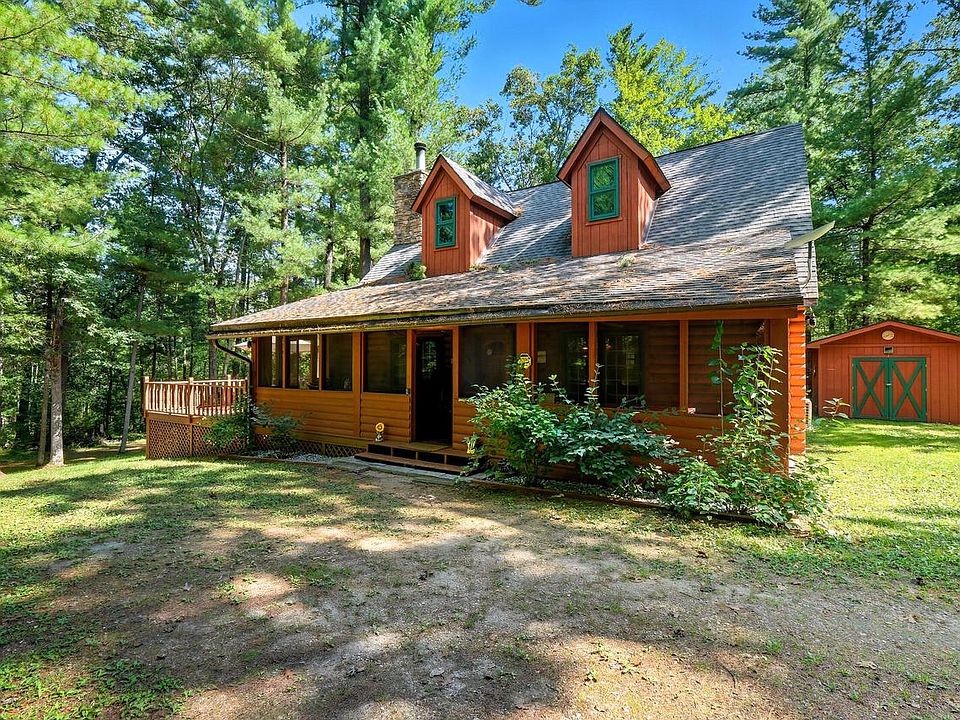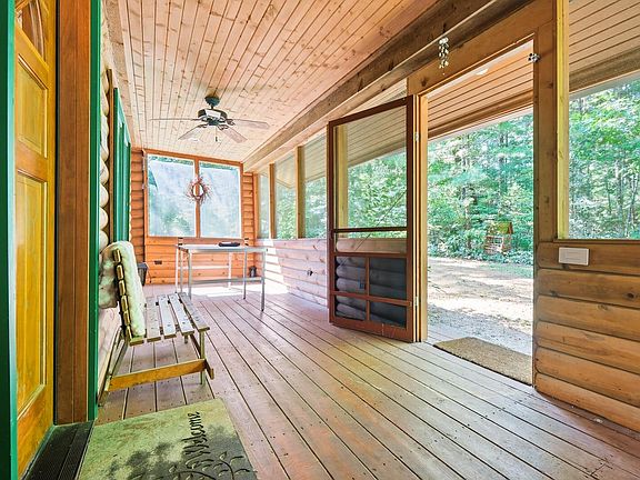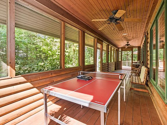 Secluded log cabin retreat on the water, surrounded by trees and wildlife. The main level opens to a spacious great room and deck overlooking the water, perfect for outdoor enjoyment. Two upstairs bedrooms share a full bathroom, and laundry is conveniently located on the 2nd floor. A large screened porch lets you enjoy the sights and sounds of nature year-round. Cozy evenings await around the backyard firepit--perfect for storytelling, roasting marshmallows, and making memories with family and friends. This cabin combines rustic charm, natural beauty, and rental-ready potential.
