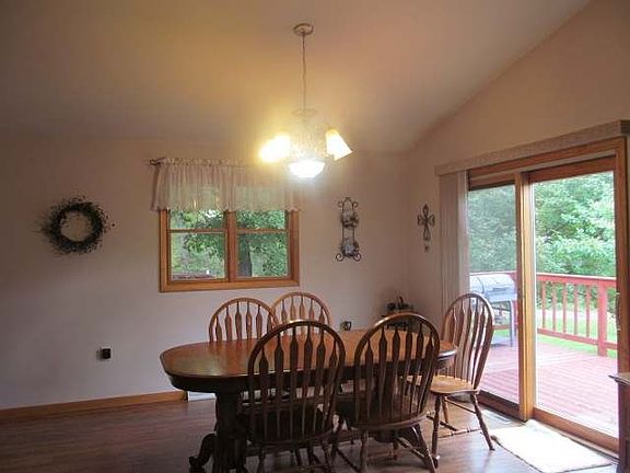 A custom built, 4 bed, 2 bath open concept style home on 5 acres is surrounded by mature trees and loads of nature! Gorgeous hickory cabinets line the walls of the spacious, sun-lit kitchen with stainless steel appliances, laminated wood floors and patio doors to the large deck area. Home features newer neutral carpeting, vaulted ceilings with recessed lighting, first floor bedroom and full bath, main floor laundry and sitting nook area with upstairs having Master bedroom and large bath with Jacuzzi tub, 2 more bedrooms with separate sitting area. Tall trees provide shade and privacy to the front of the home, with the backyard garden area having loads of sunlight. Rest of the property is nicely wooded with open spaces for food plats, and a quaint 12' x 20' cabin with wood stove. Great hunting for deer, bear, turkeys and partridge. Great value!