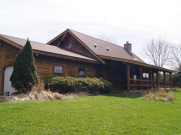 Great log styled home on a beautiful 5 acre parcel in the Kettle Moraine! Beautiful lot with a perfect mix of wooded and open space. Relax on the covered front porch or the huge private back yard deck. Interior boasts huge cathedral ceiling great room with floor-to-ceiling stone fireplace. Nice size kitchen and dining area. Stairs leads to master bedroom suite with private bath and large Walk-In Closet. Finished walkout lower level with egress windows. Walk In Attic!! Newer roof. Horses allowed!