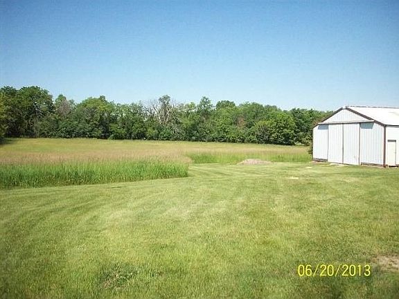 Hard to find 8 acres property! Tree lined lot & outbuilding. Newer roof, freshly painted interior, new plumbing, natural fireplace, formal dining area plus eat in kitchen. Bedrooms 2 & 3 have oak hardwood floors. Master bedroom has walk in closet, full bath, amazing space & great view. Furnace can easily be converted to gas if wanted. Please note when viewing wooded area behind outbuilding is only about 1/2 way to the back of the lot! Move in ready but needs cosmetic updates.