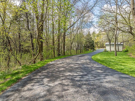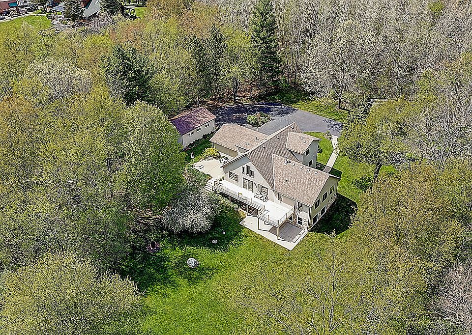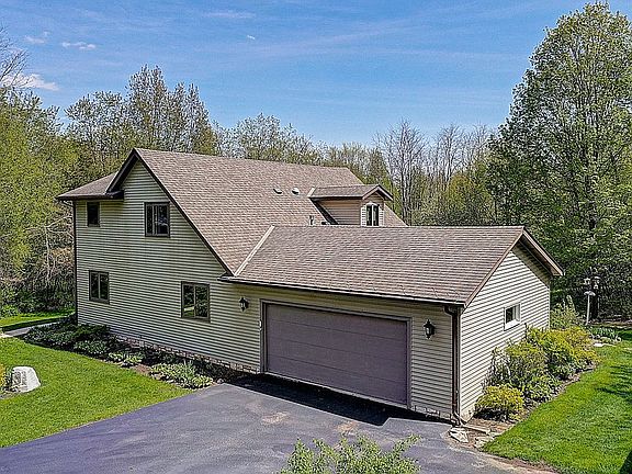 A well taken care of home on a historic rustic road surrounded by 5.25 acres. This bright open and spacious home with cathedral ceilings is truly inviting and offers plenty of space to entertain. Open concept kitchen and living room with a floor to ceiling fireplace and a picturesque southern view of the yard and wooded trails below. A full addition and renovation in 2007 includes your choice of dining room, family room/den and an indoor pool spa. The stunning natural surroundings are filled with the wonder and majesty of open spaces, a kettle, prolific wildlife and trails. This impressive offering includes multiple structures such as a pole barn, heated detached garage and shed making it ideal for a family compound and legacy estate. Enjoy a full walk-out basement.