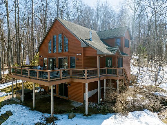 Stunning 5 bed / 3 bath chalet with 243 feet of low elevation frontage is nestled perfectly to capture lake views of Birch Lake. With ample space and privacy this lot is ideal for entertaining guests, relaxing in the warm summer breezes or sitting next to the fire and listening to the loons. This large, open concept, free flowing 3,172 square-foot home built in 2008 offers soaring cathedral ceilings, beautiful hardwood floors, kitchen with custom cabinets and granite countertops, hand hewed log railing and a cozy fireplace perfect for those cool days. Huge master suite with jacuzzi tub is second to none . Lower level offers an amazing family room with plenty of space for gatherings while watching the big game. Large, low maintenance deck works great for grilling out and watching the sun go down. Good vac rental history! Birch Lakes/Chetac Chain offers many boat up bars and restaurants with some live music on weekends, sand bar, and good fishing. Great ATVing and snowmobiling area!