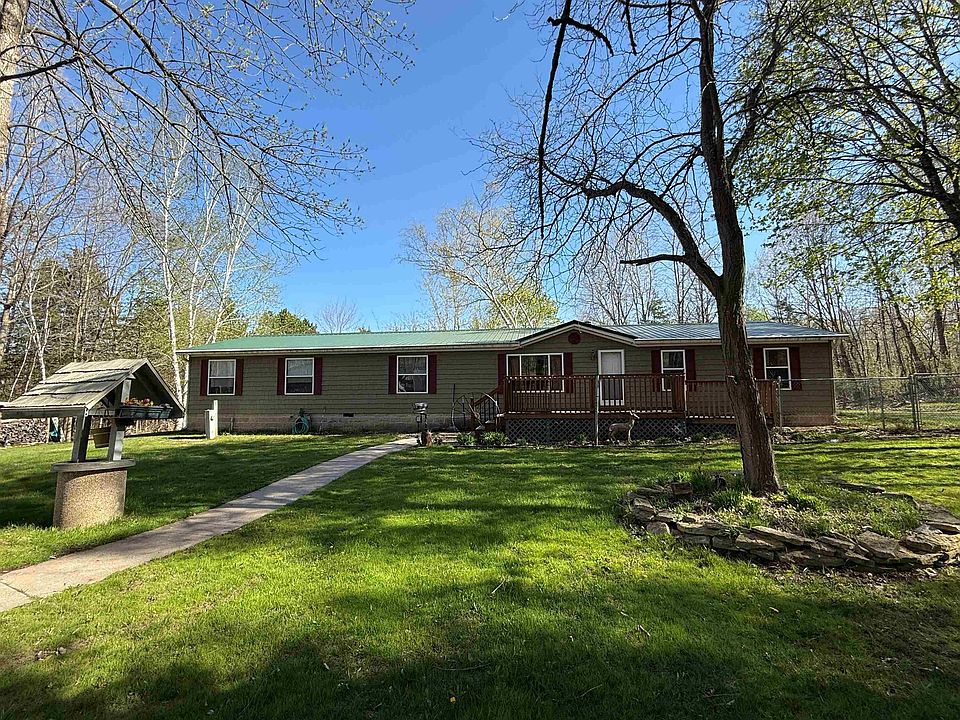 Here is your opportunity to live on a quiet dead-end road with over 143 ft of frontage on the Peshtigo River. This well-maintained ranch style country home is situated on over 5 acres. New siding and pool (2021). New refrigerator, washer and dryer (2022). 8 yr old furnace - 9 yr old steel shingles. Swing set/play set included. Also two other storage buildings. Come and see for yourself!