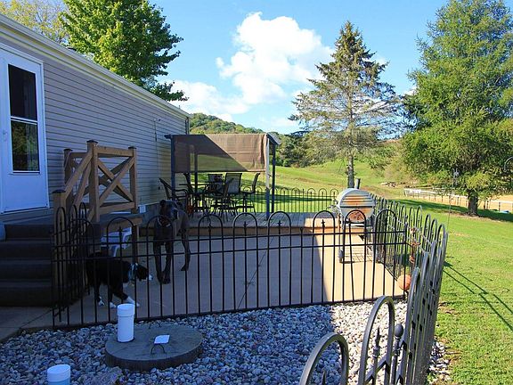 Breathtaking views with unlimited potential to develop. This secluded area with rolling hills offers that dream of country living with the convenience of being close to town. Property has a pond, plenty of pasture and woods to hunt. Larger barn houses stable and riding arena. Heated outbuilding could be used as a workshop, garage, or kennel. Included is a 3 bedroom, 2 bath manufactured home. Endless possibilities make this property a must see!