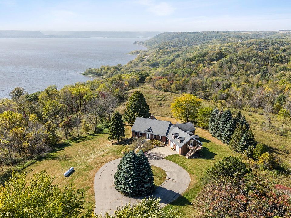 Breathtaking Lake Pepin Views! Nestled on 74 acres, this incredible property features a deck spanning the entire length of the house, perfect for soaking in stunning sunsets over the lake. Inside, enjoy two cozy fireplaces, a charming library with built-ins, and a formal dining room. The spacious kitchen with stainless steel appliances flows into a living room with panoramic views. Bonus: A separate apartment with its own entrance offers rental income potential. There are two refrigerators and two stoves (there's also a stove and refrigerator up in the apartment. Also, a freezer and wine refrigerator are available in the basement. Plus, a heated barn with electricity and an unfinished upstairs space adds endless possibilities.