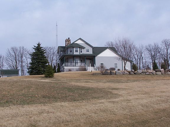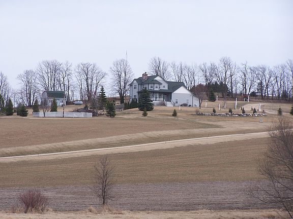 Private hilltop country home with stunning panoramic views. Enjoy the peaceful country life on this 40 acre estate. The property boasts abundant wildlife, creek, woods, and 28 tillable acres. This 3 story home built in 2001 includes: 3BR, 3.5 baths, gorgeous 2 sided fireplace, open concept, first floor laundry, and enjoy game day in the ultimate bonus room! Men will love this oversized 3+ car garage with heat and AC! Additional storage available in the garden shed and two outbuildings. Easy access to freeway. One hour north of Milwaukee airport. Located on quiet country road.