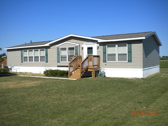 Immaculate Schult 'Double-Wide' Mobile Home 2-car detached Garage Country Acres Mobile Home Court For Owners & Occupants age 55+ Newly occupied in 2006 but built in 2003 Schult (double wide) Monthly Fees: $351.00 ( includes lot rental, taxes, sewer, water, & garbage pickup) Size of Home: 28' x 60' (1680 sq.ft.) Lot Size: 80' x 120' 6" Sidewalls 'Open Concept' Livingroom & Diningroom Eat-in Kitchen Master Bedroom Suite with bathroom & large walk-in closet Master Bedroom Bathroom has tub, shower, & double sink vanity 3 Bedrooms - master on south end with 2 bedrooms on north end Main Floor Laundry Gas - Forced Air Heat Central Air Conditioning 2-Car Detached Garage (built new in 2005) 2-Car Cement Driveway Well & Septic are owned by Country Acres 200-Amp Electric Service Cable wired Detached Utility Shed (10'x12') Small Pets are Allowed Peaceful & Quiet Neighborhood Eastern Views of Country & Sunrises Storage area for Boats & RVs Garden area Inclusions: - Electric Stove - 2 Refrigerators - Microwave - Washer/Dryer - Window Treatments - Ceiling Fan & Lights - Garage Door Ope