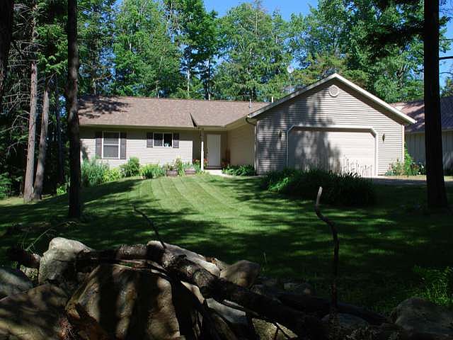 Motivated Sellers!! Looking for a private setting on Lake Alice? With 1.86 wooded acres, this rare location is sure to please. Quiet, end of road with 319 feet of frontage. Built in 2005, the home offers FIVE bedrooms and three baths including master suite with walk in closet. Open concept great room with cathedral ceiling and gas fireplace. Large dining room with a lake side deck that flows to the patio with fire ring, hot tub area, garden and even a concrete basketball court. Oak kitchen has a center island with pantry and all stainless smudge free finish appliances. Convenient and practical mud room and laundry off the garage. Lower family room, full bath and two legal size bedrooms with plenty of daylight windows. 34x24 detached two story garage for all your boat and toy storage. Perfect home for the lake lifestyle.